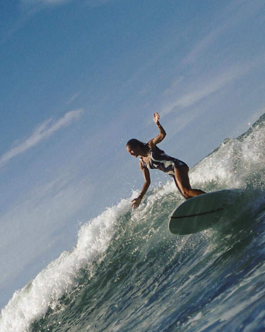 Our surf swimwear is meant to hug the natural curves of your body, as the fabric stretches around 1-3 cm when you take a dip.
