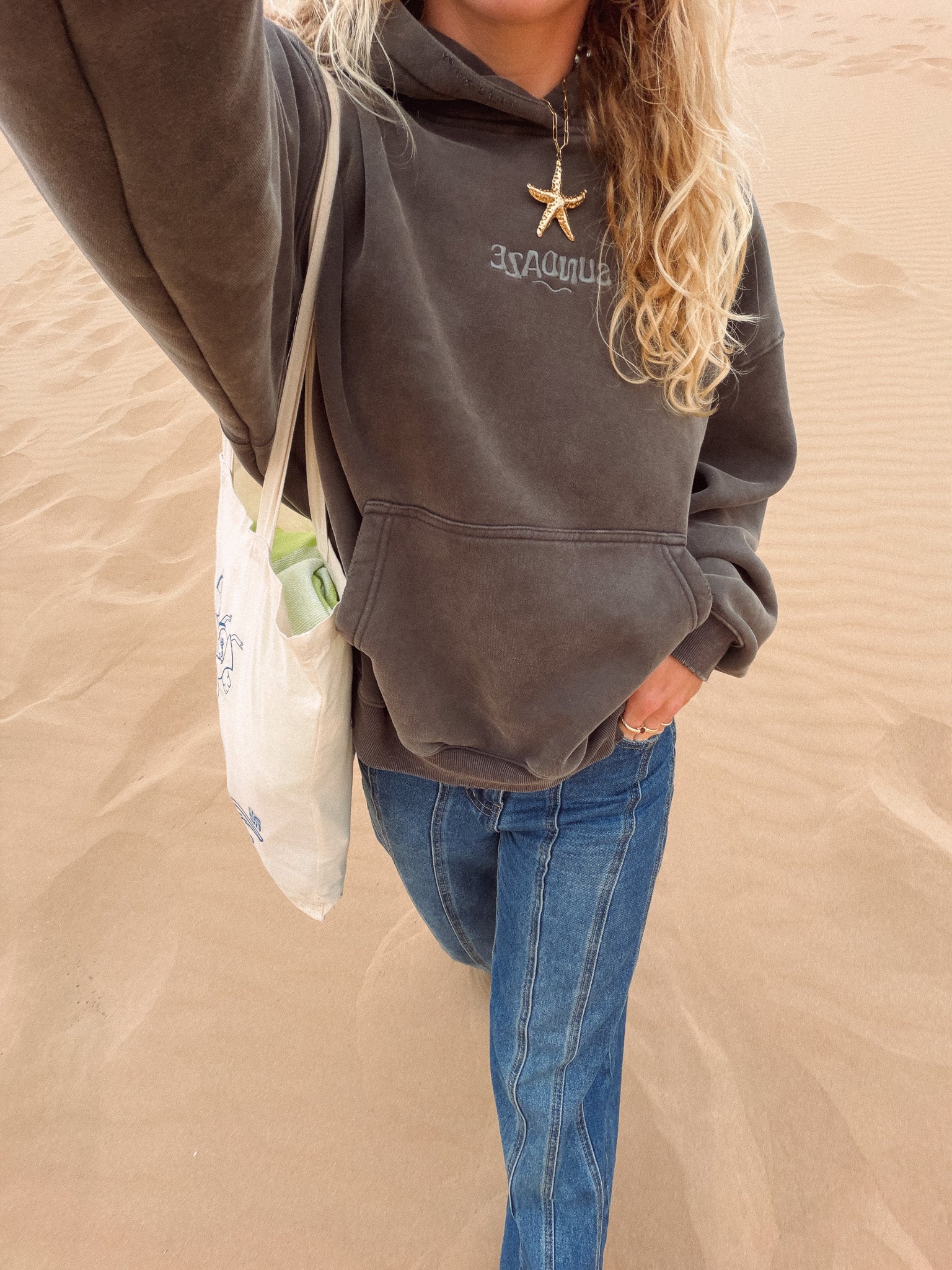 Model is wearing a size M for an oversized fit. Size down for a more fitted look, or keep your regular size for a relaxed fit.